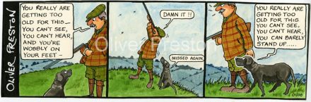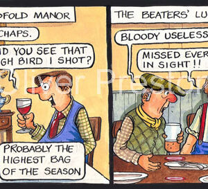 Signed, Limited Edition Strip cartoon print from The Field Magazine. Size : 20.5 x 10.5 inches (52 x 26.5 cm) mounted with cream mount board. From an edition of 850.